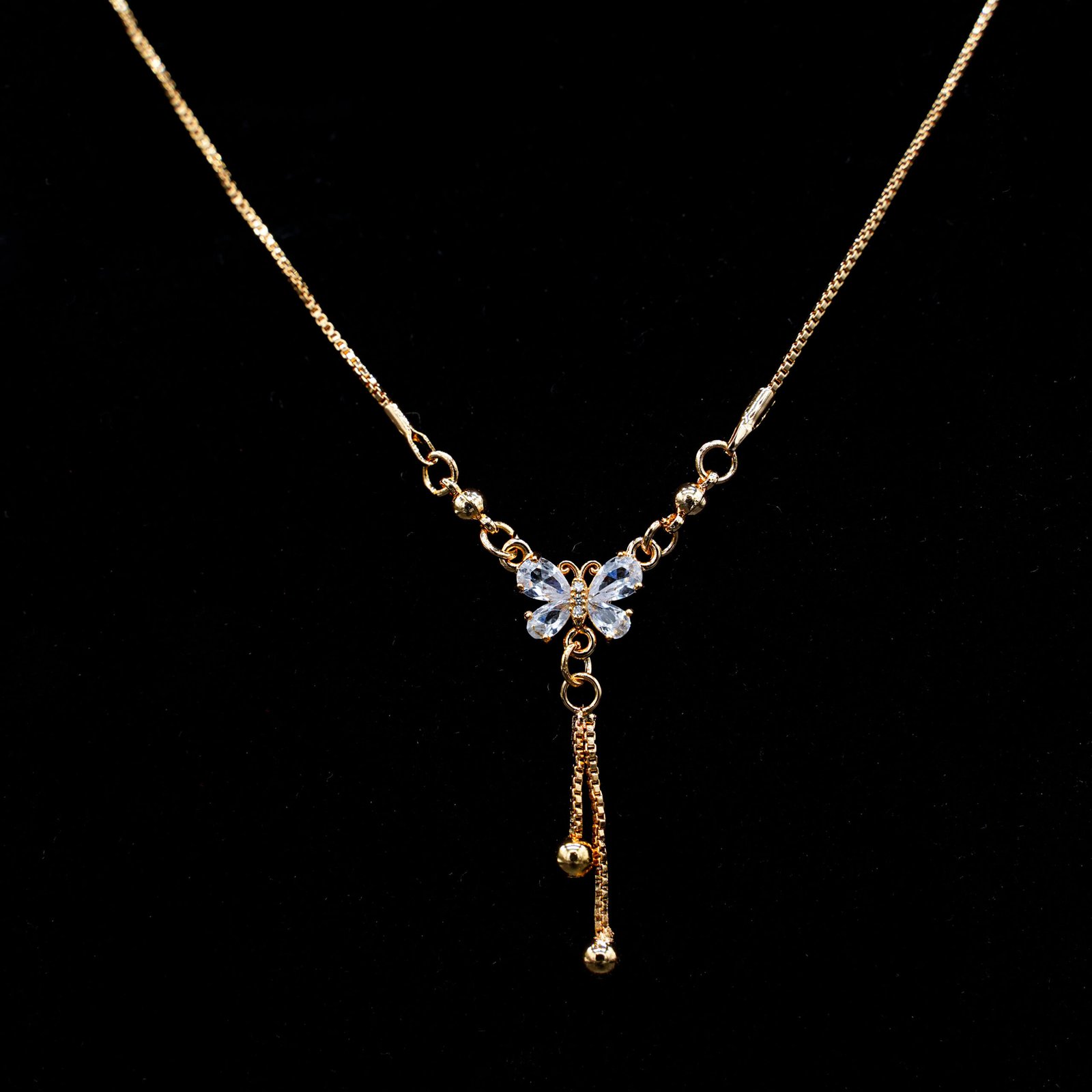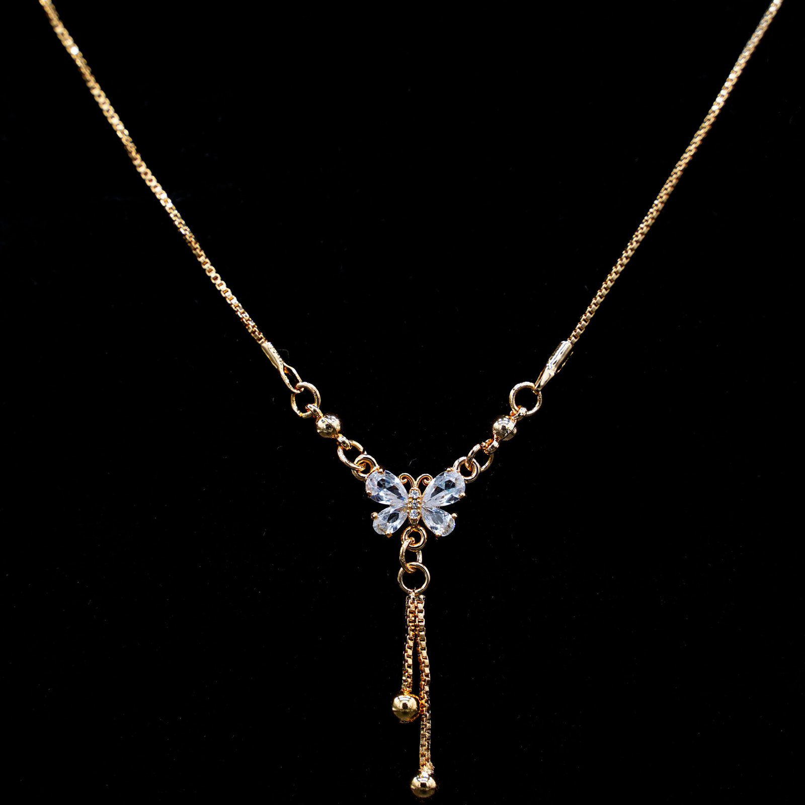 A perfect touch of graceful sparkle! This little crystal butterfly pendant is so dainty and feminine. The gold-tone chain and the delicate tassel drop make it an elegant accessory that moves beautifully with you. It’s a wonderful, simple piece for adding a subtle, chic detail to any outfit